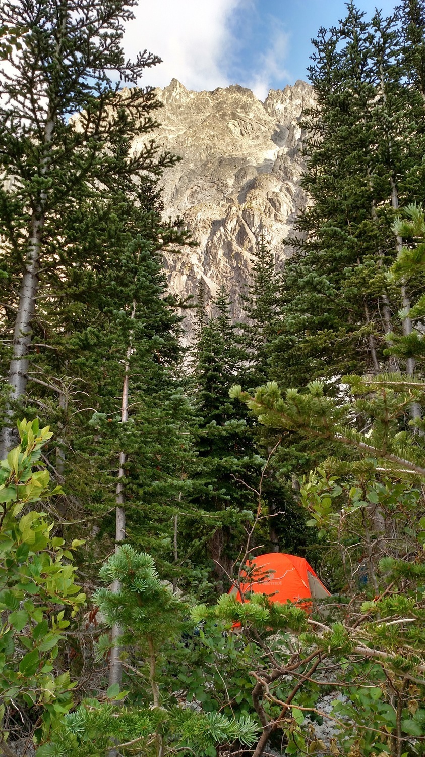 “Campsite at base of Aasgard (south point of Colchuk Lake)”