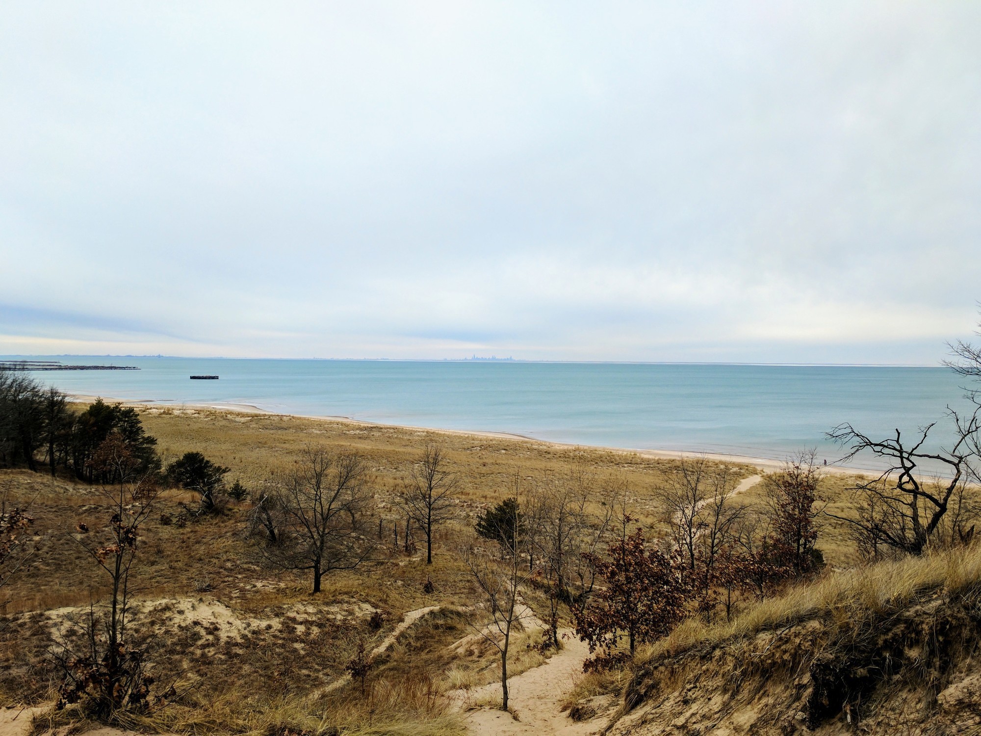“This is the view from the top of a dune along the trail. You can see the Chicago skyline on clear days.”
