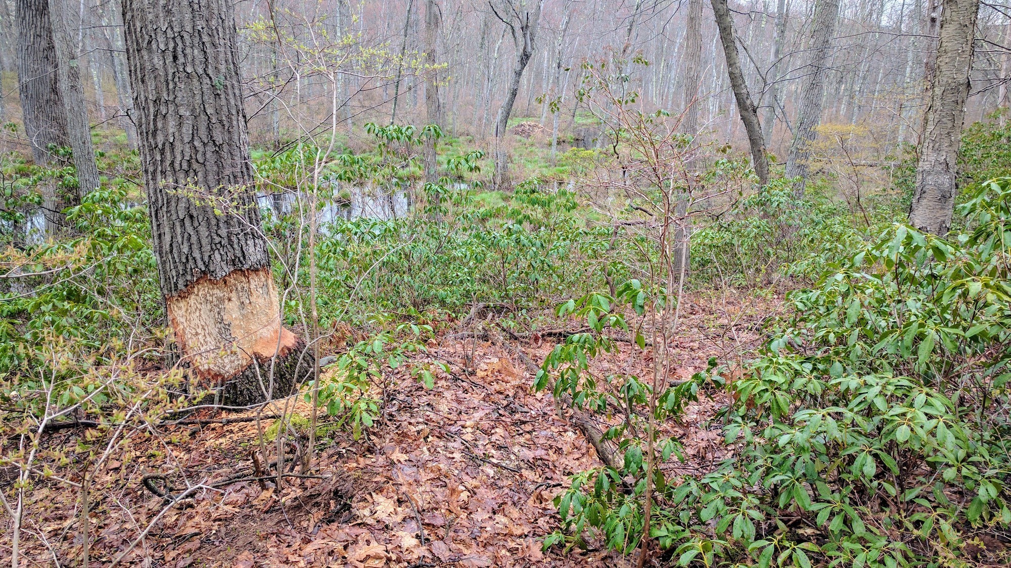 “Beaver Crossing! Looks like this tree was just too large for the beaver to handle. Far in the distance (center of photo) you can just make out a mound of branches that must be its home.”