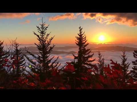 “Autumn leaves blowing in the foreground along Woody Ridge Trail after a pre-dawn hike up to catch the sunrise. The cloud encased South Toe River Valley where the trail begins is below in the forefront. 10/15/17”