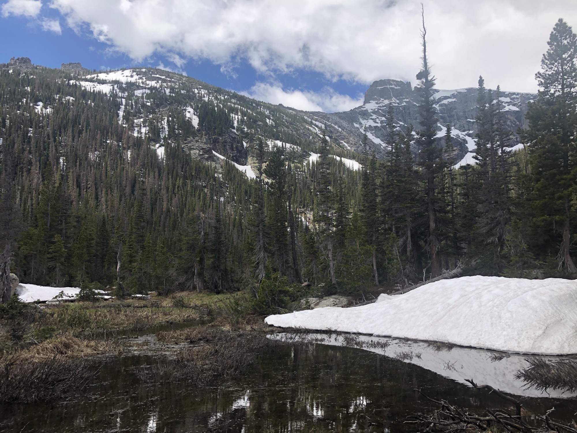 “Snow drift melting at Spruce Lake on 6/24/19.”