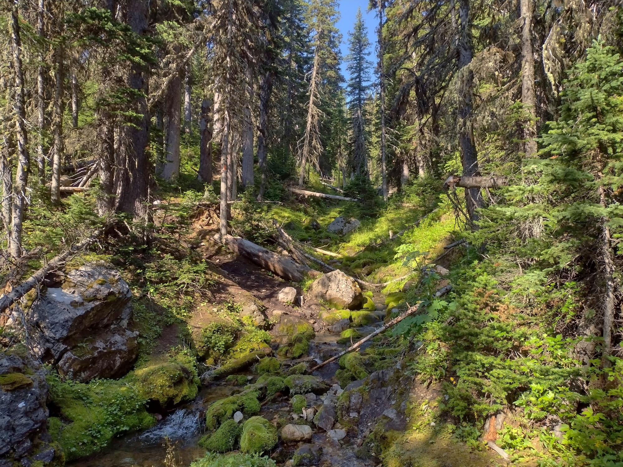 “Just a pretty creek (South Hidden Creek) in pretty sunlit forest along the GDT on a perfect July morning in Alberta...”