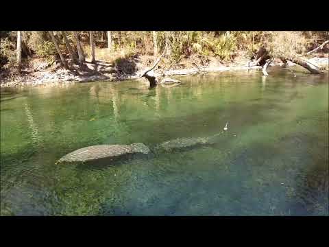 “Manatees along Spring Run Boardwalk in Blue Spring State Park, Florida.”