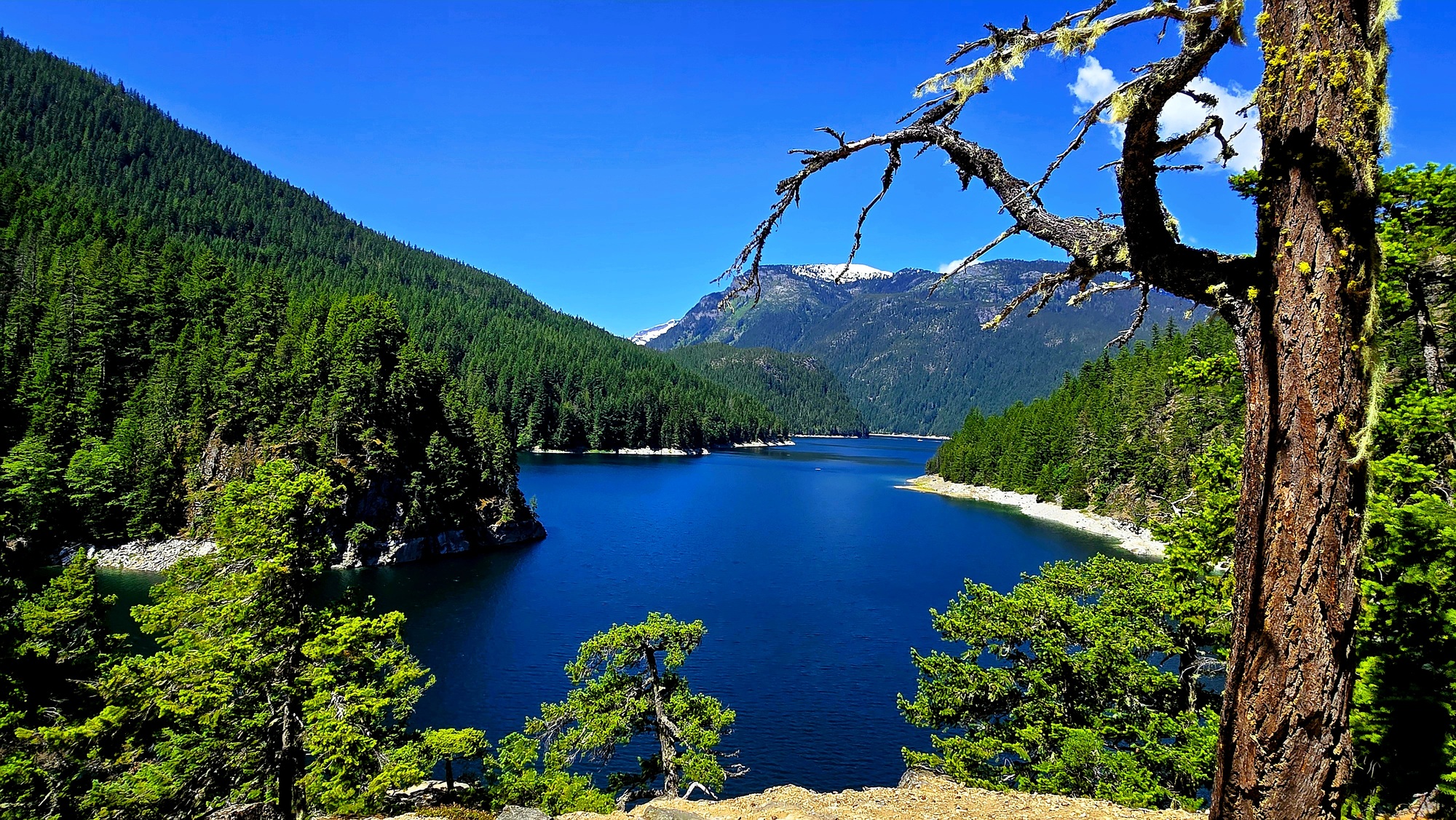 “Looking out across Ruby Lake at the beach area near Hidden Hand Camp.”