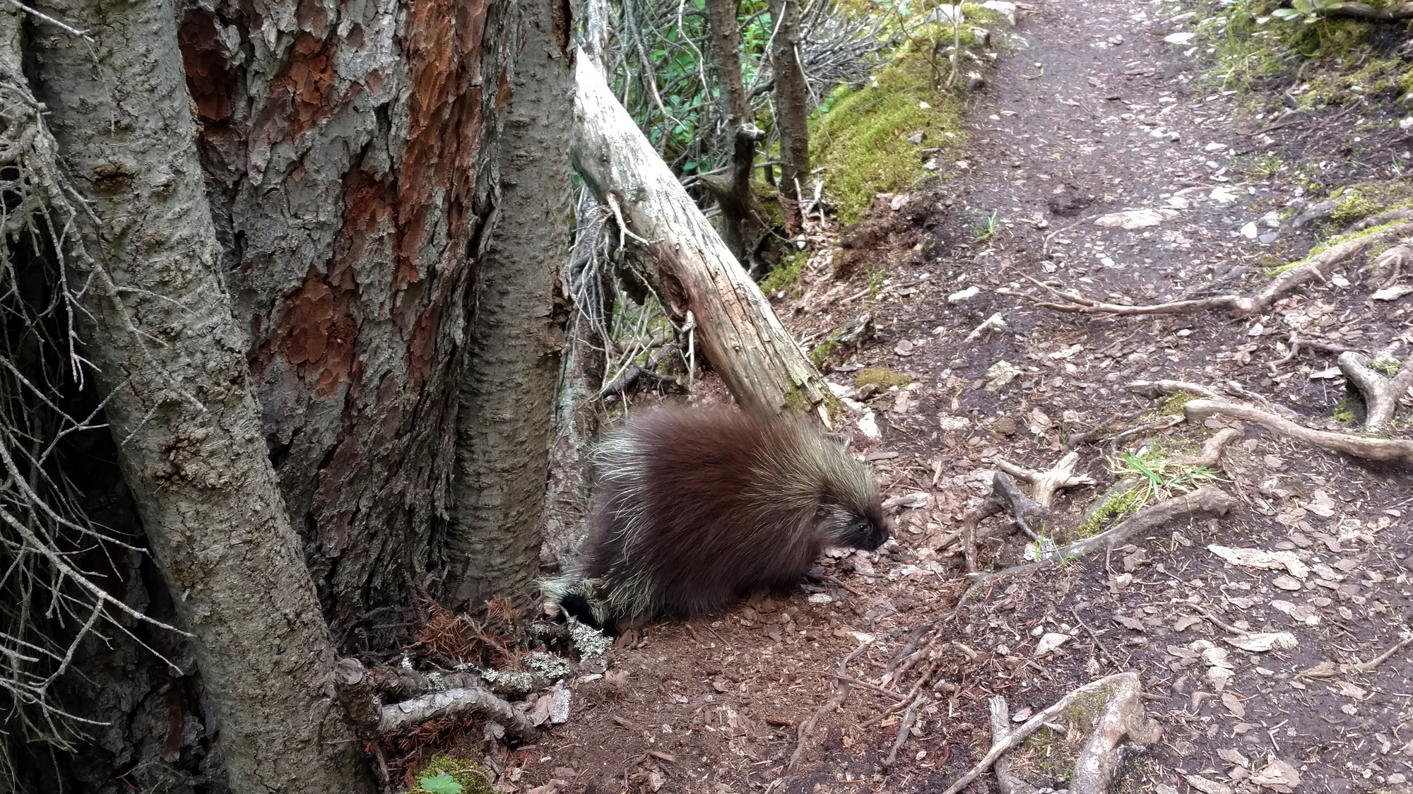 “Cute porcupine on the trail next to Upper Elk Lake.”