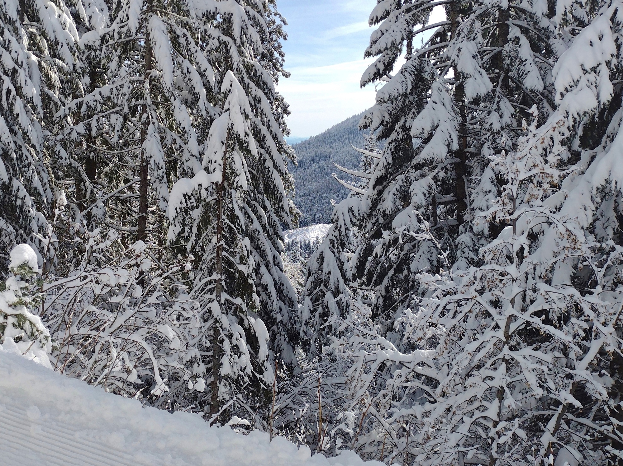 “Nearby mountain seen through the trees along Quartz Mountain Loop.”